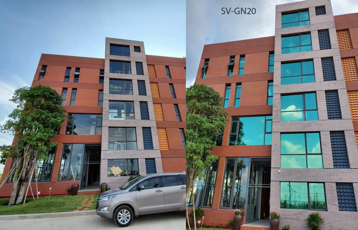 Tòa nhà dán phim cách nhiệt phản quang màu xanh lá